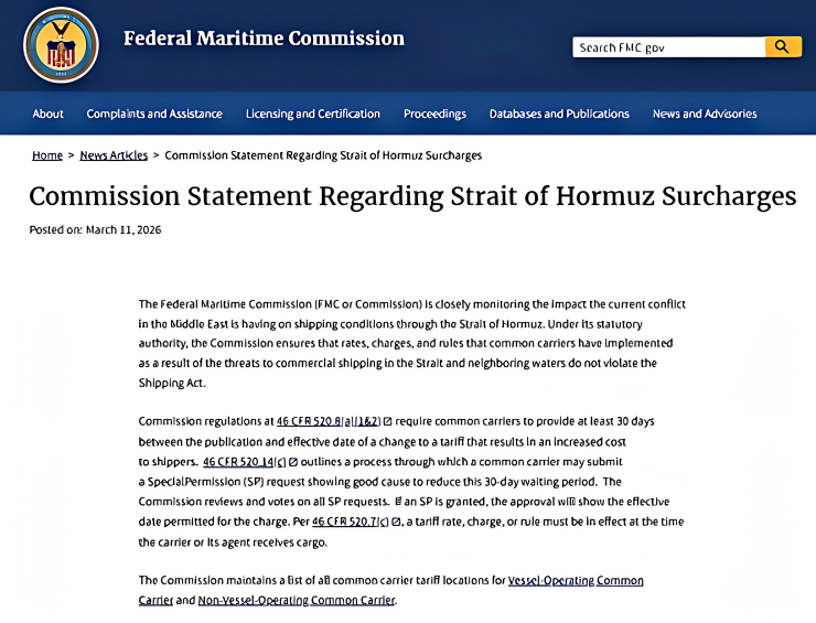 💰FMC驳回船司加价|美中东附加费4.1未生效