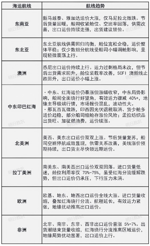 北美、东南亚、中东红海等涨价航线,出口货主需提前锁定远期舱位与运价,规避后续涨价风险;