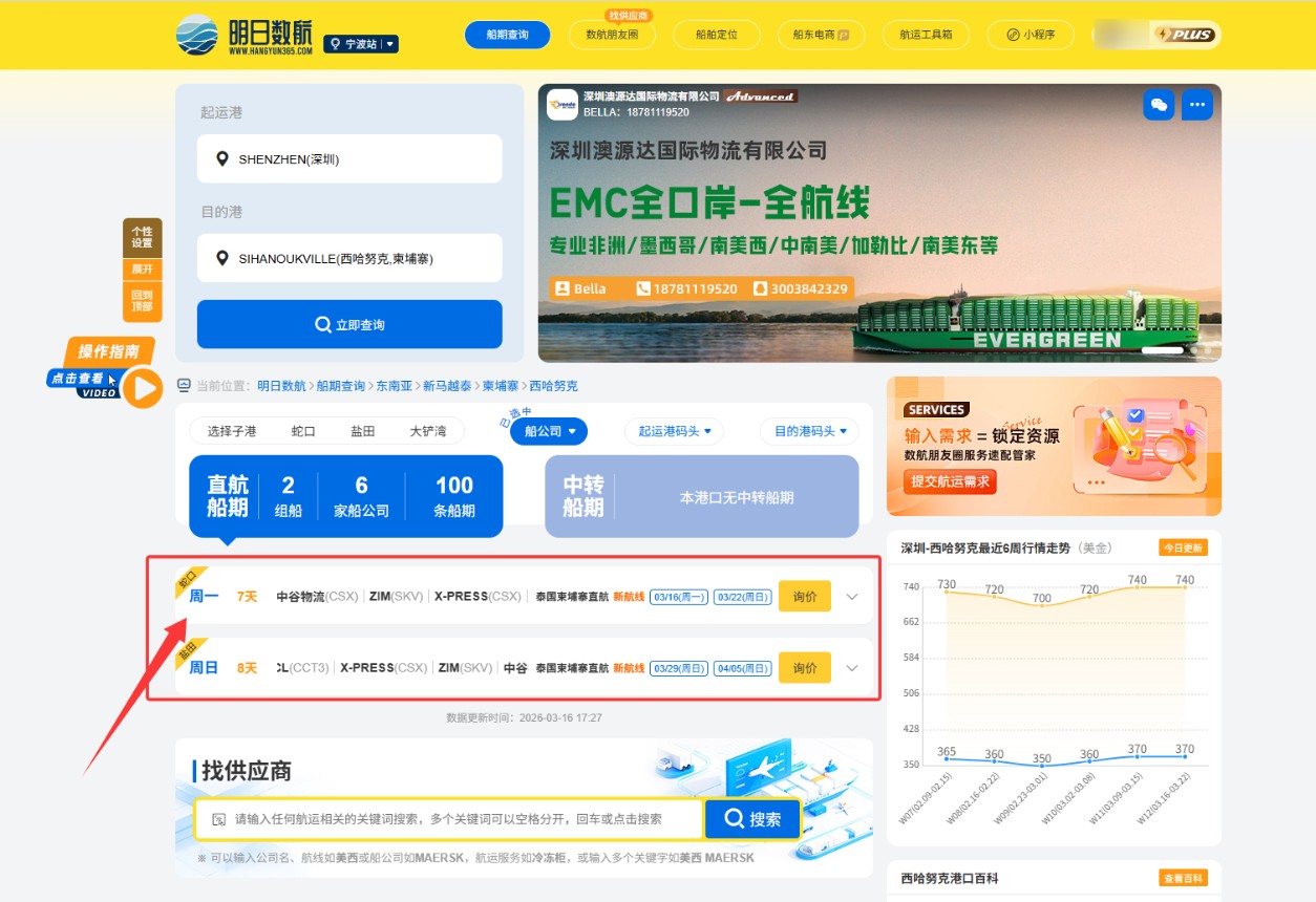 六大船公司联手全新推出华南-泰国-柬埔寨快线(CSX)。CSX航线以固定周班模式稳定运营,实现了西哈努克港至盐田港的高效直达运输。#航线新动态 #西哈努克 #全球航线搜索